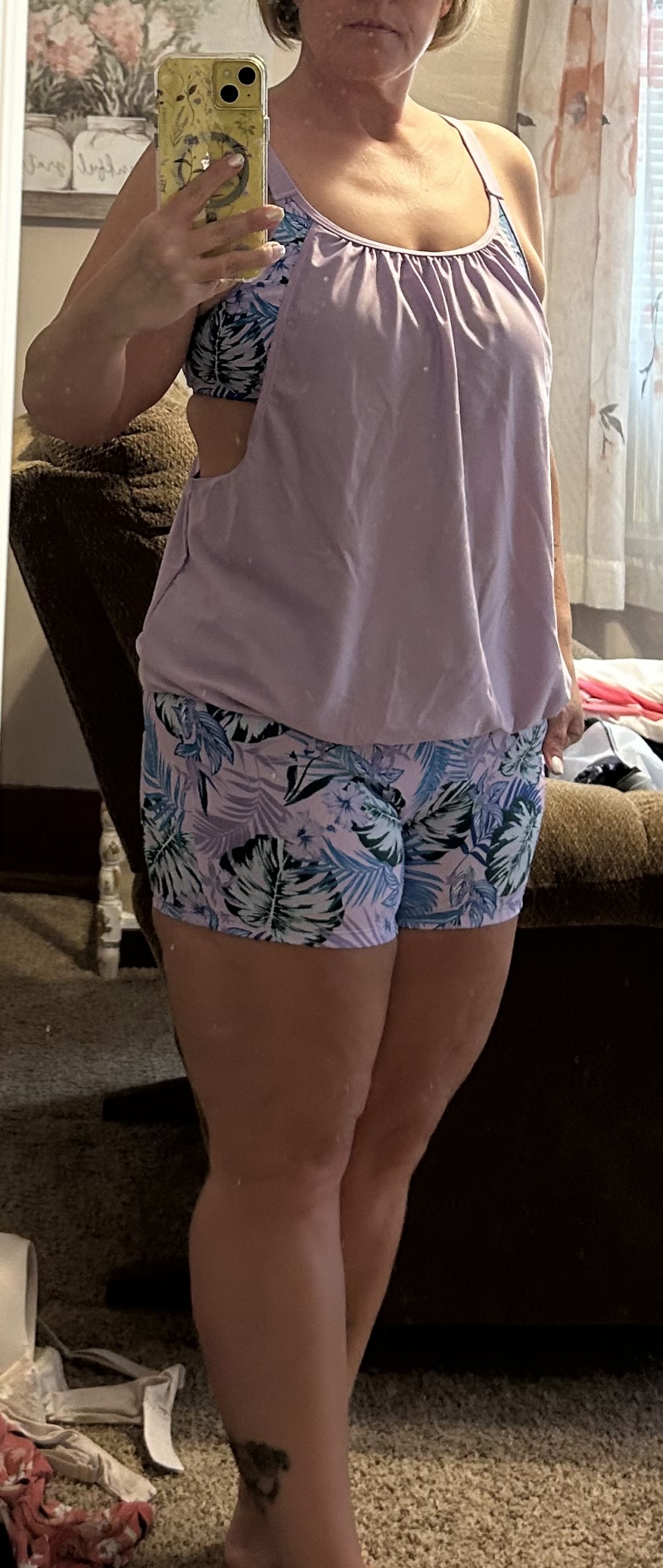 Tummy Coverage Mid Waisted Purple Tankini Set
