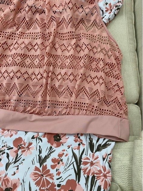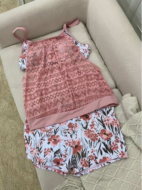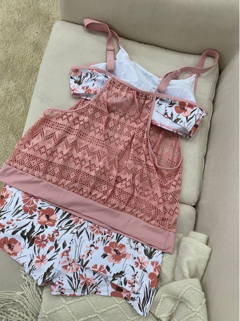 Mid Waisted Tropical Plants Print Dusty Pink Tankini Set