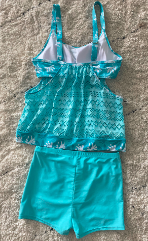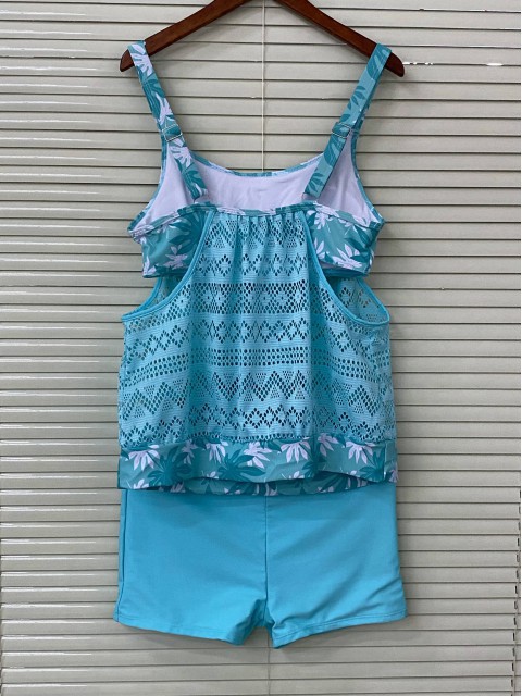Mid Waisted Marine Life Print Light Blue Tankini Set