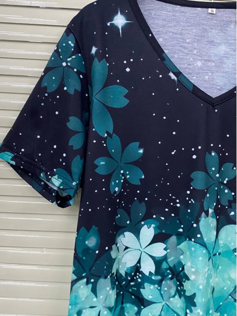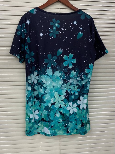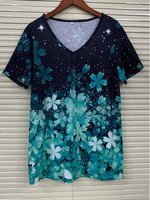Black Patchwork Floral Print Half Sleeve T Shirt