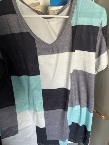 Grey Patchwork Geometric Print Long Sleeve T Shirt