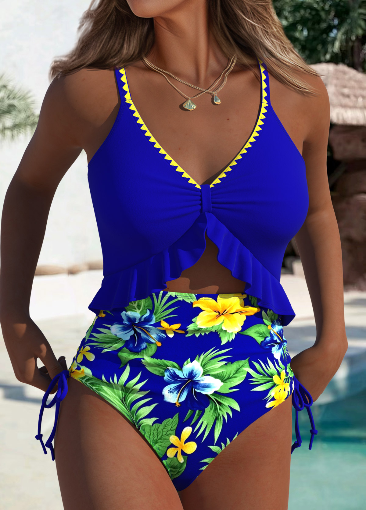 Random Floral Two-Piece One Piece Swimwear and Skirt