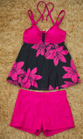 Tummy Coverage Mid Waisted Plants Print Purple Tankini Set