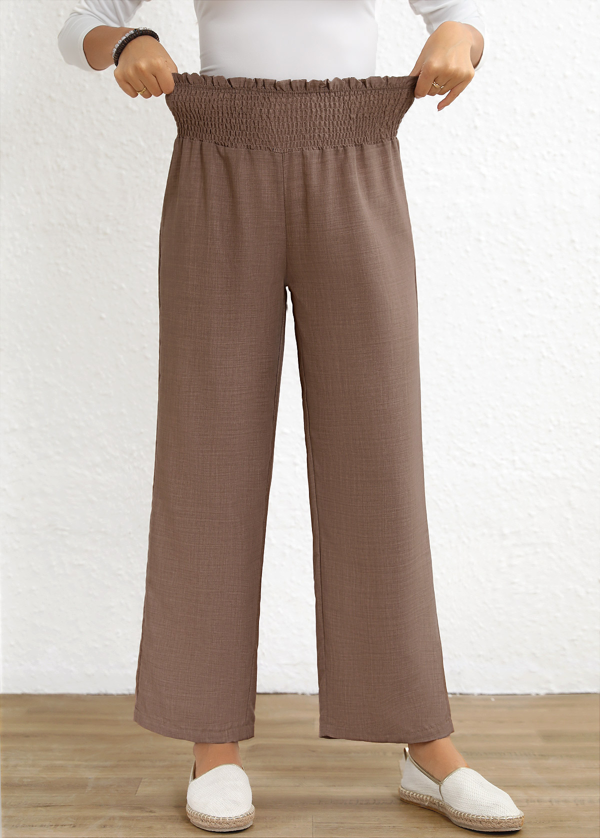 Light Camel Straight Leg Elastic Waist High Waisted Pants