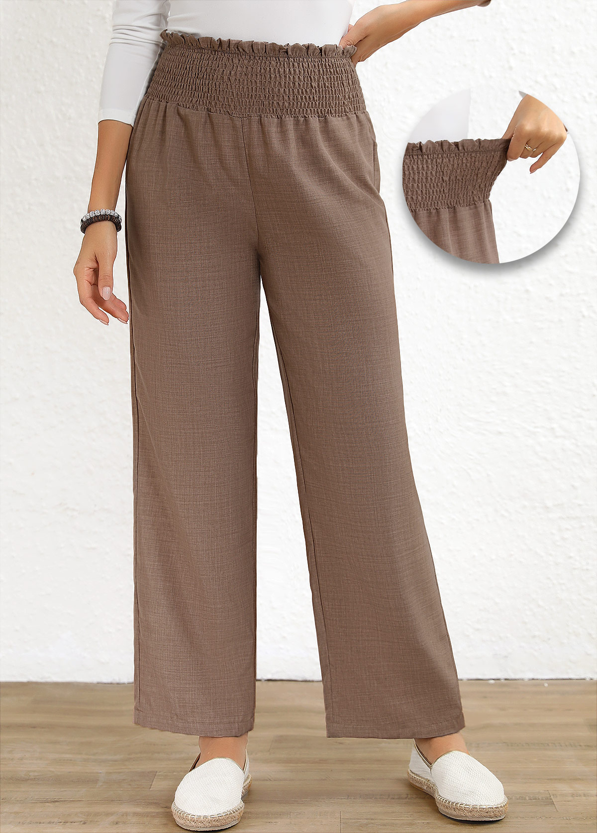 White Straight Leg Elastic Waist High Waisted Pants