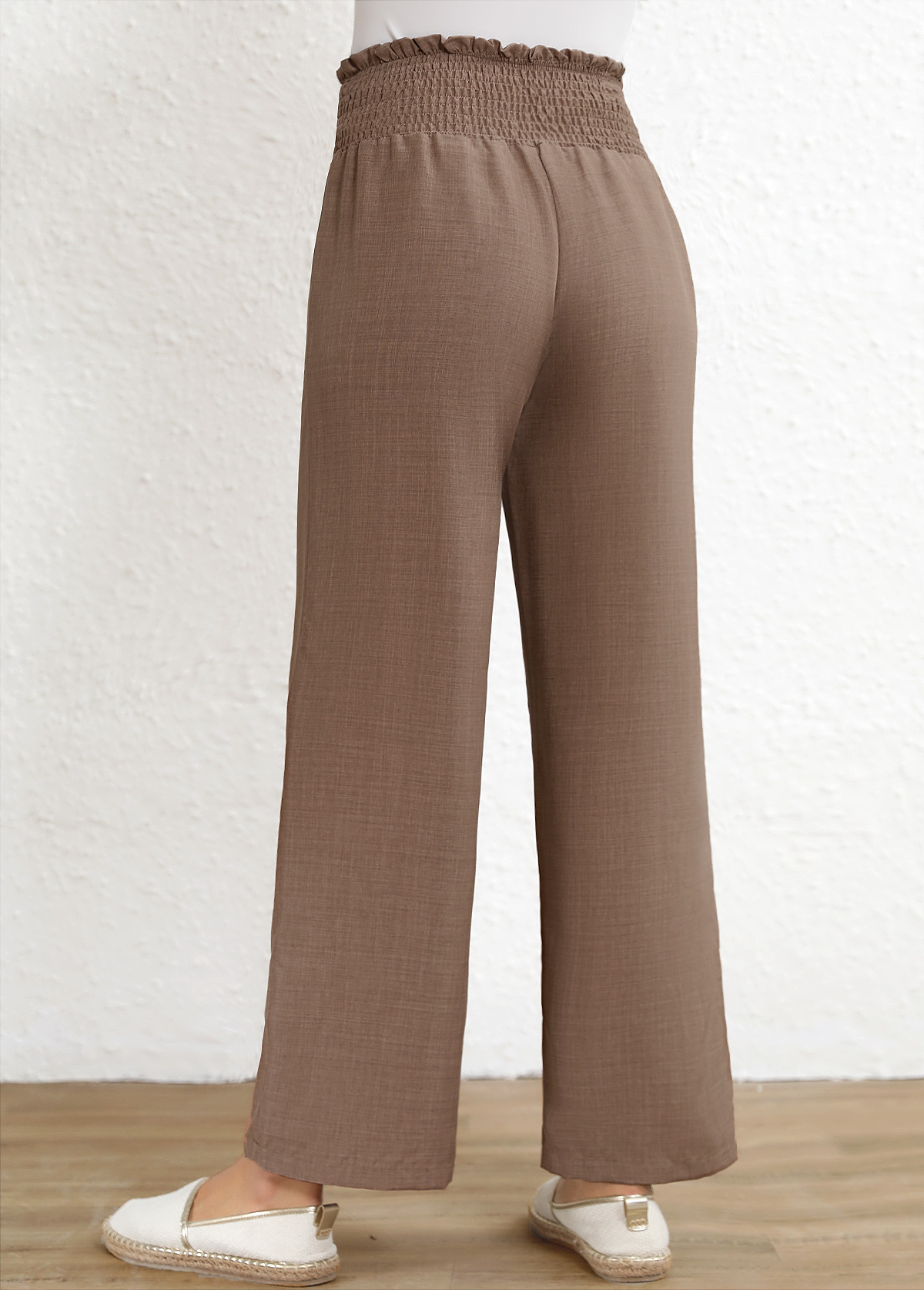 Light Camel Flowy Wide Leg Elastic Waist Pants