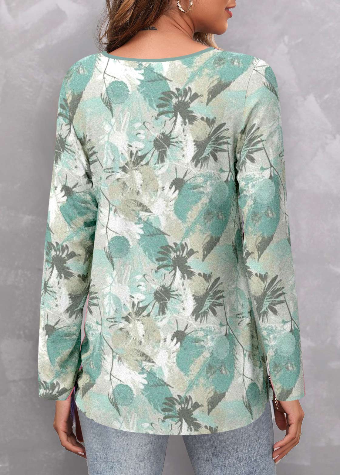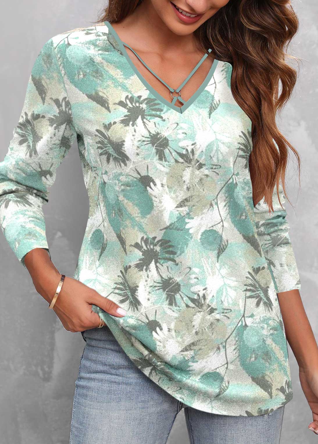 Light Green Tummy Coverage Tropical Plants Print T Shirt