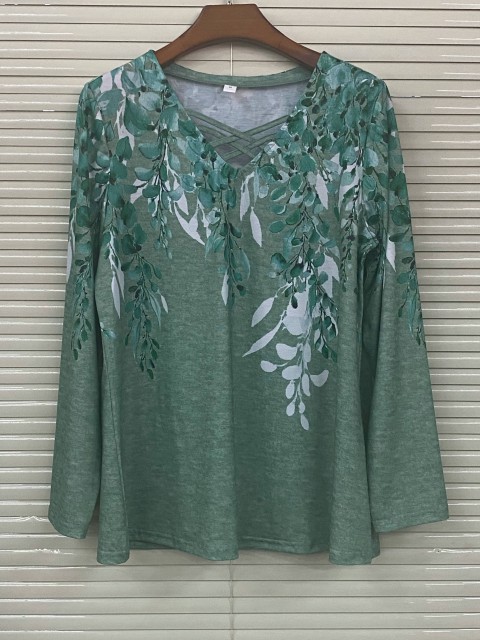 Black Patchwork Leopard Long Sleeve V Neck T Shirt