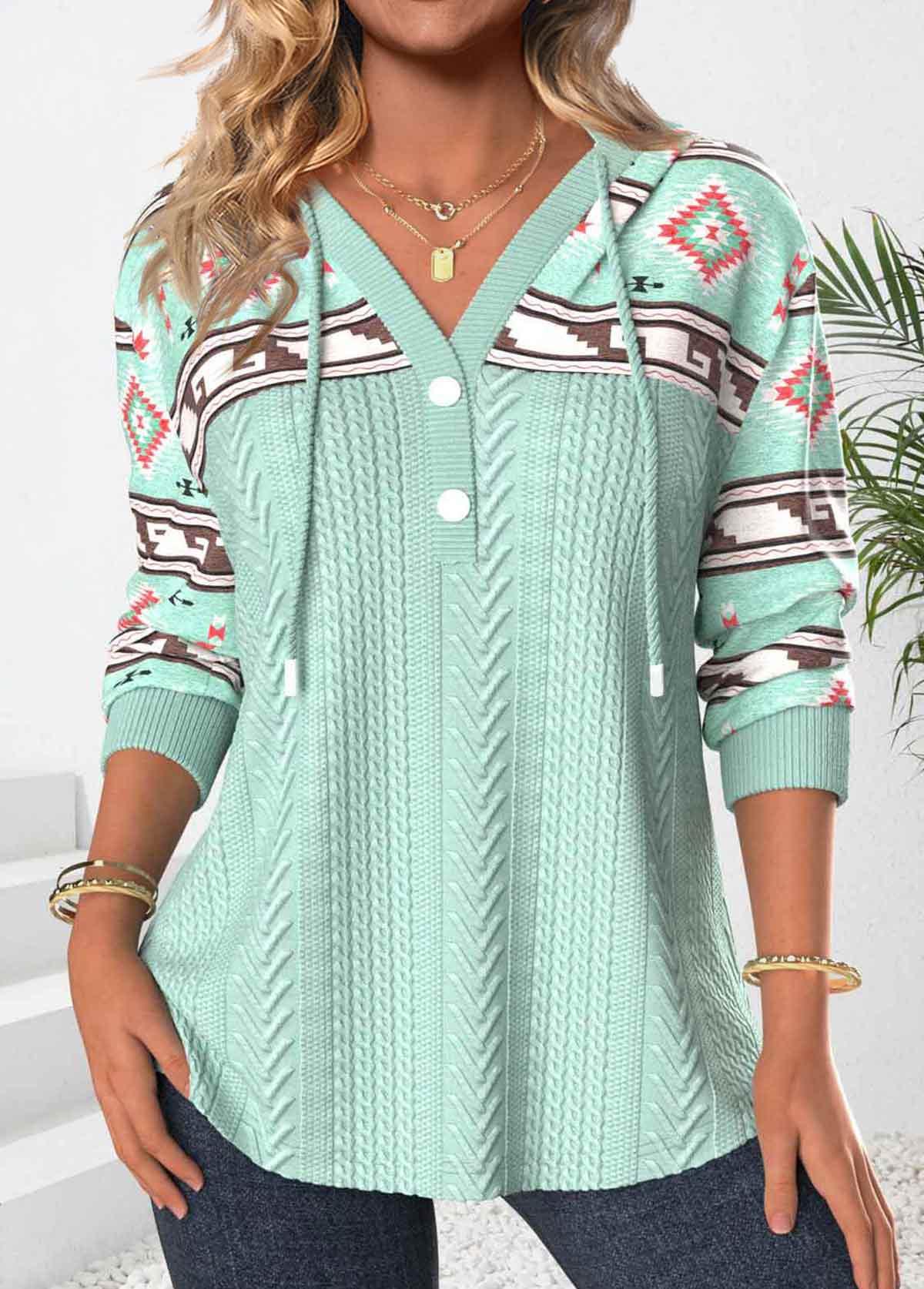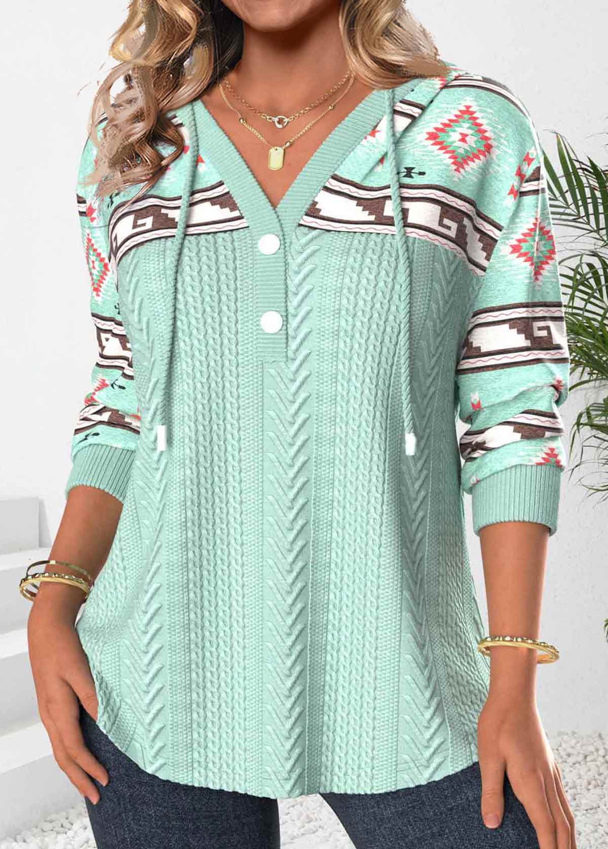 Mint Green Tummy Coverage Geometric Print Long Sleeve Sweatshirt