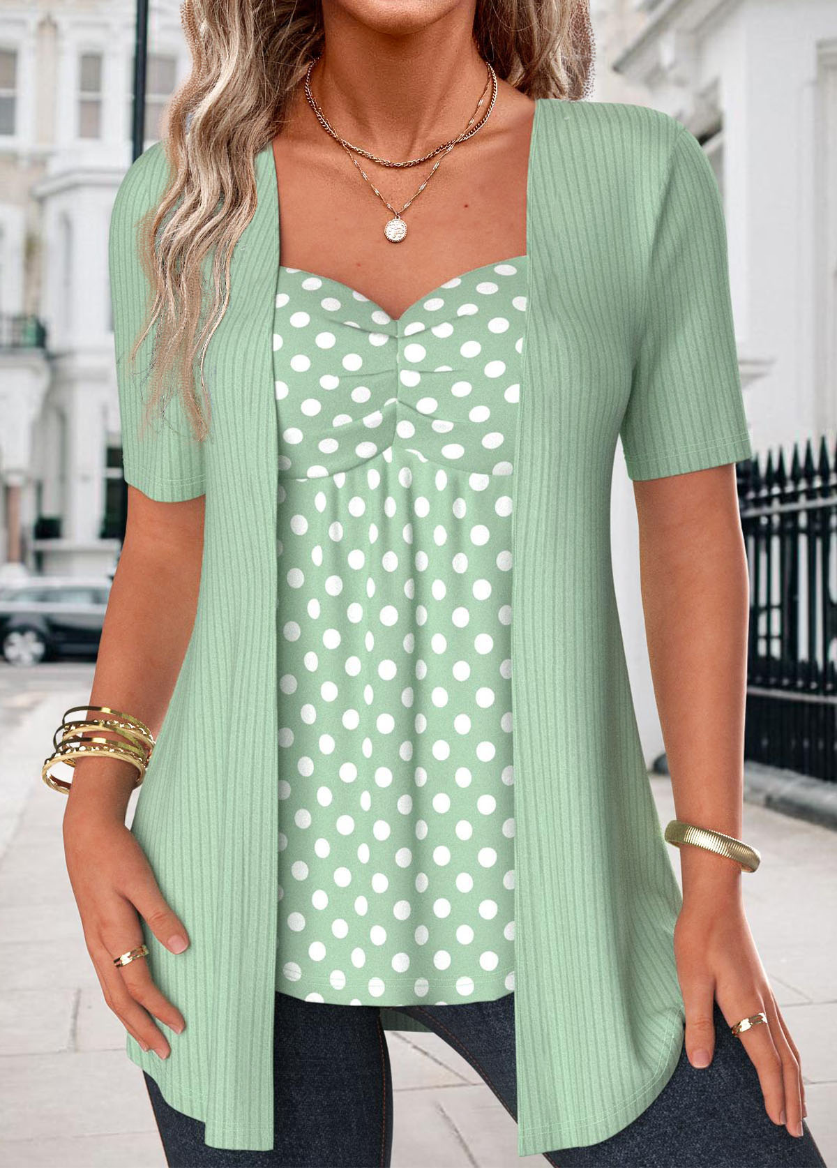 White Patchwork Short Sleeve Fake Two Piece Twinset