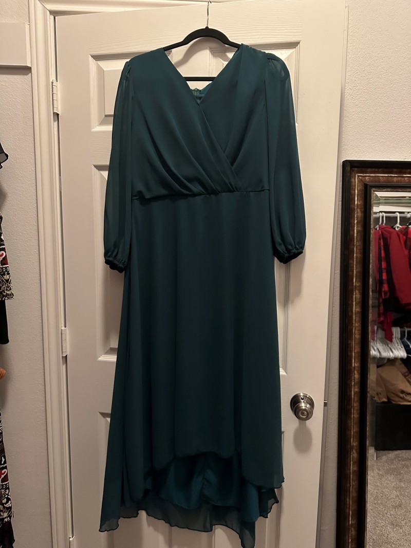 • Green Surplice High Low Three Quarter Length Sleeve Dress | thumb picture