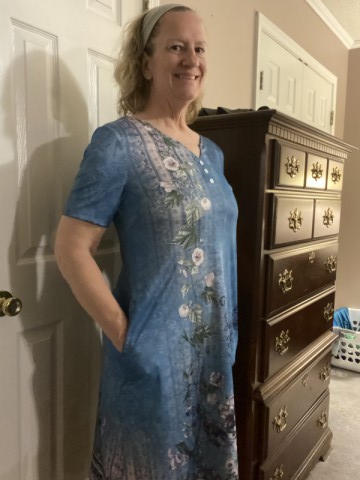 Blue Tummy Coverage Floral Print Sleeveless Round Neck Dress