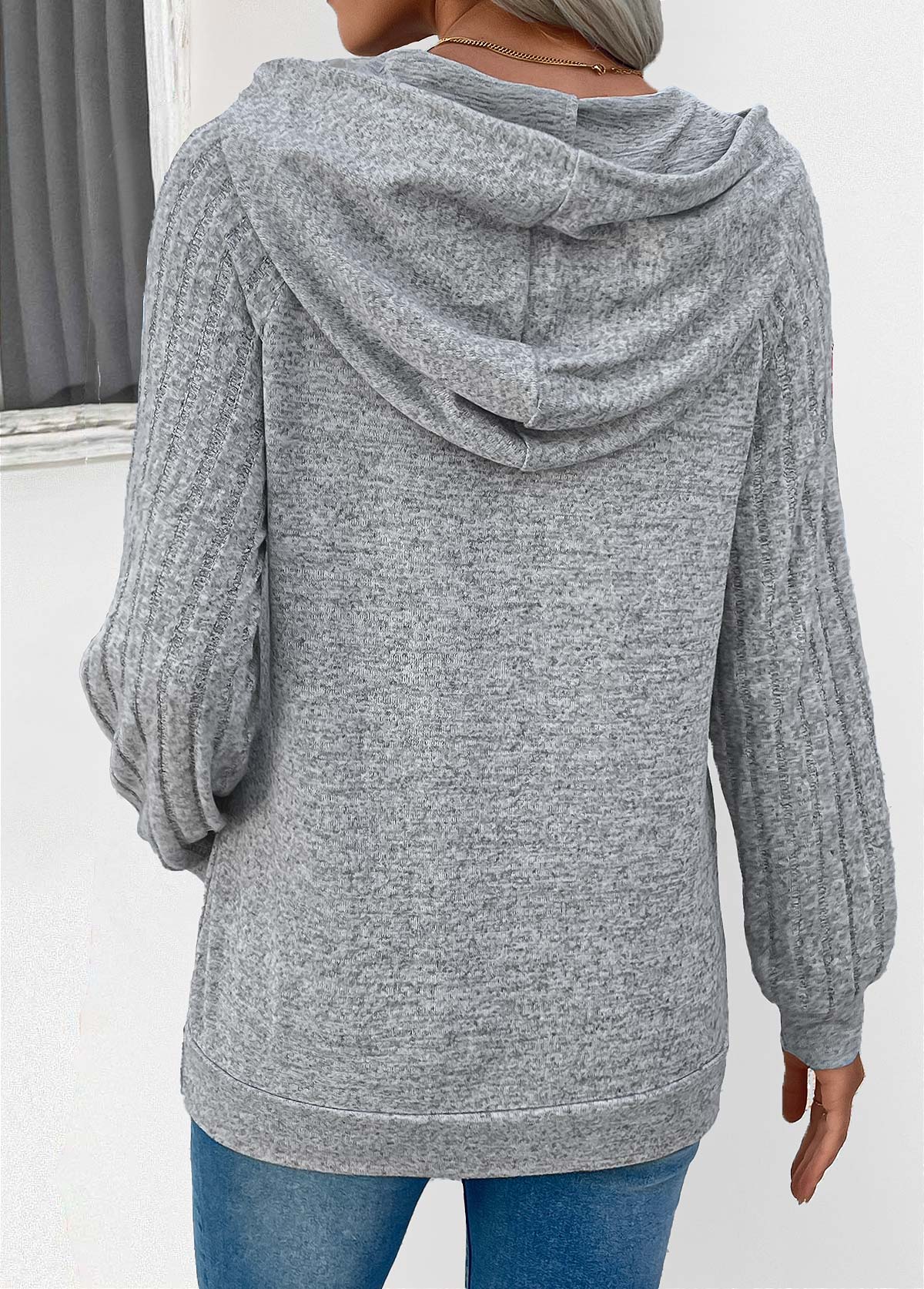 Grey Plaid Long Sleeve Turn Down Collar Sweatshirt