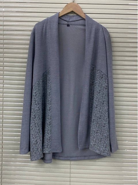 Blue Patchwork Design Long Sleeve Cardigan