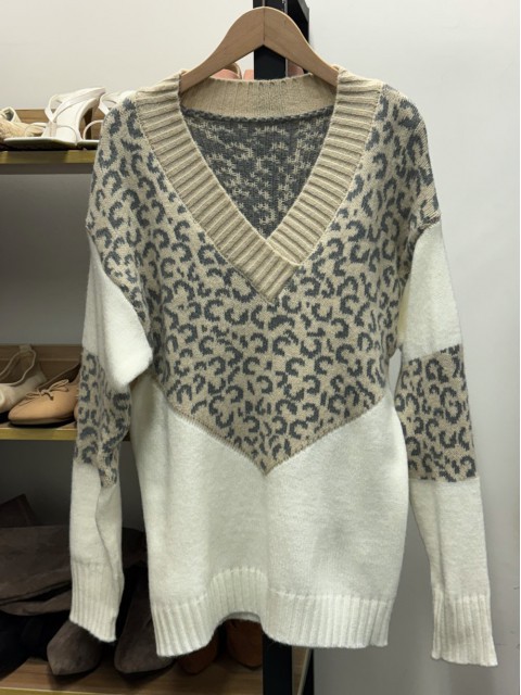 Gray Brown Tummy Coverage Tribal Print Long Sleeve Sweater