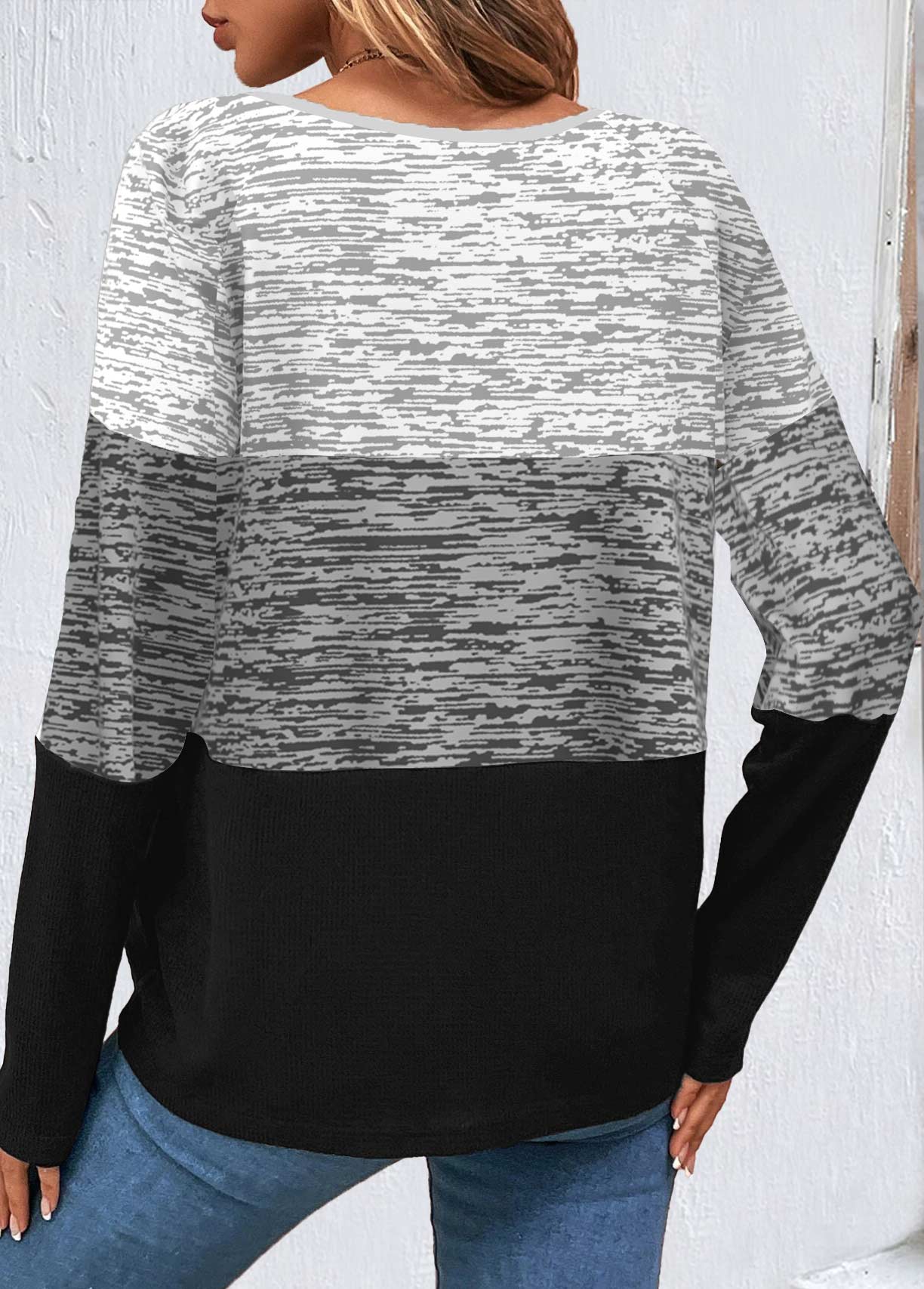 Grey Patchwork Long Sleeve Round Neck Sweatshirt