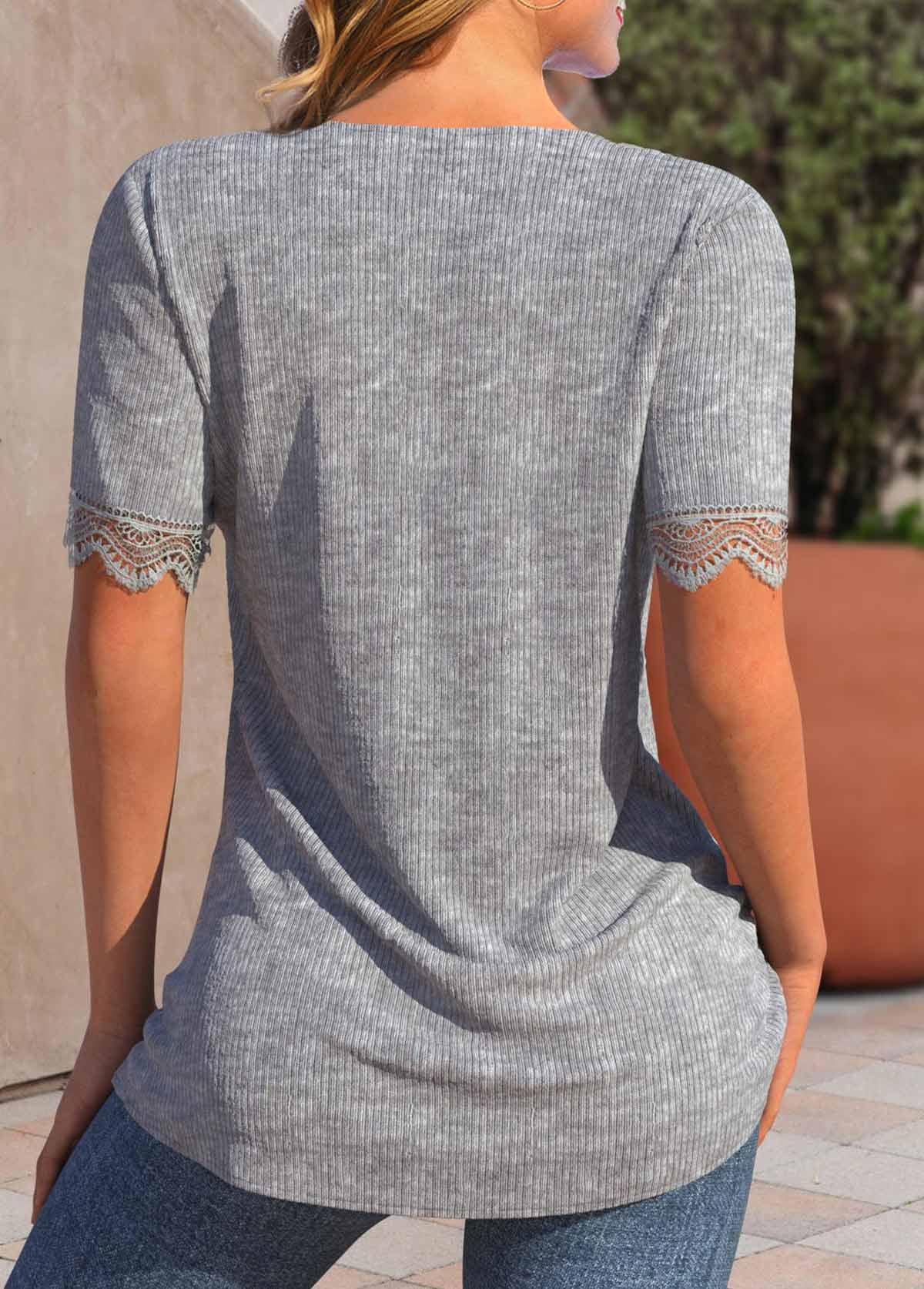 Blue Striped Short Sleeve Split Neck T Shirt