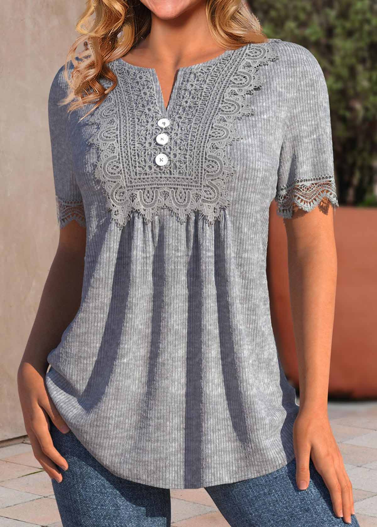 White Curved Hem Short Sleeve Split Neck T Shirt