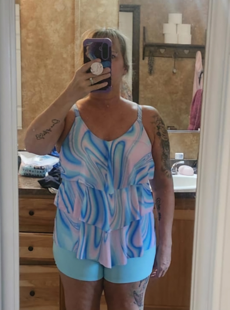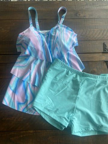 Tummy Coverage Mid Waisted Purple Tankini Set
