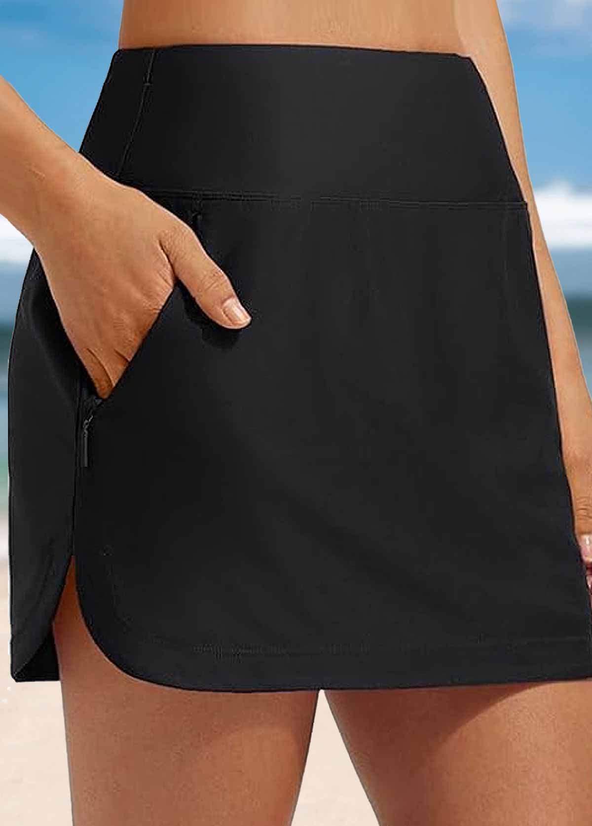 Black High Waisted Layered Swim Skirt