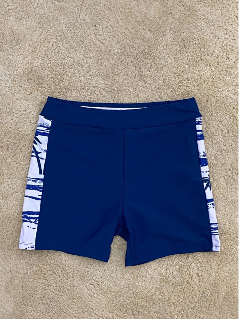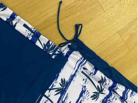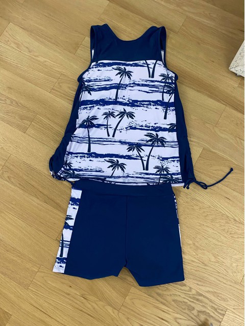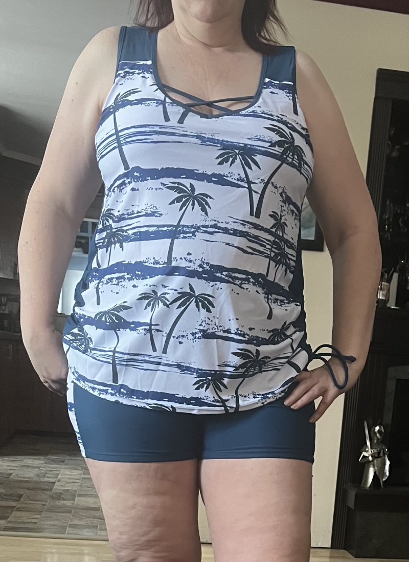 Mid Waisted Leaf Print Royal Blue Tankini Set