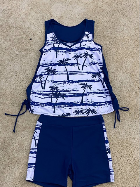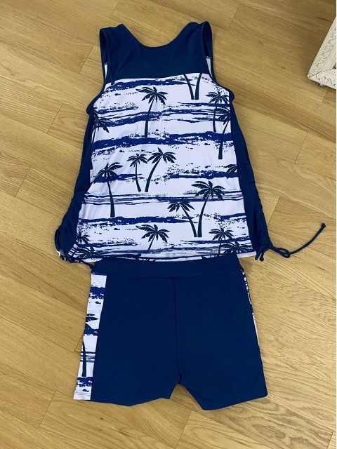Tummy Coverage Mid Waisted Plants Print Navy Tankini Set