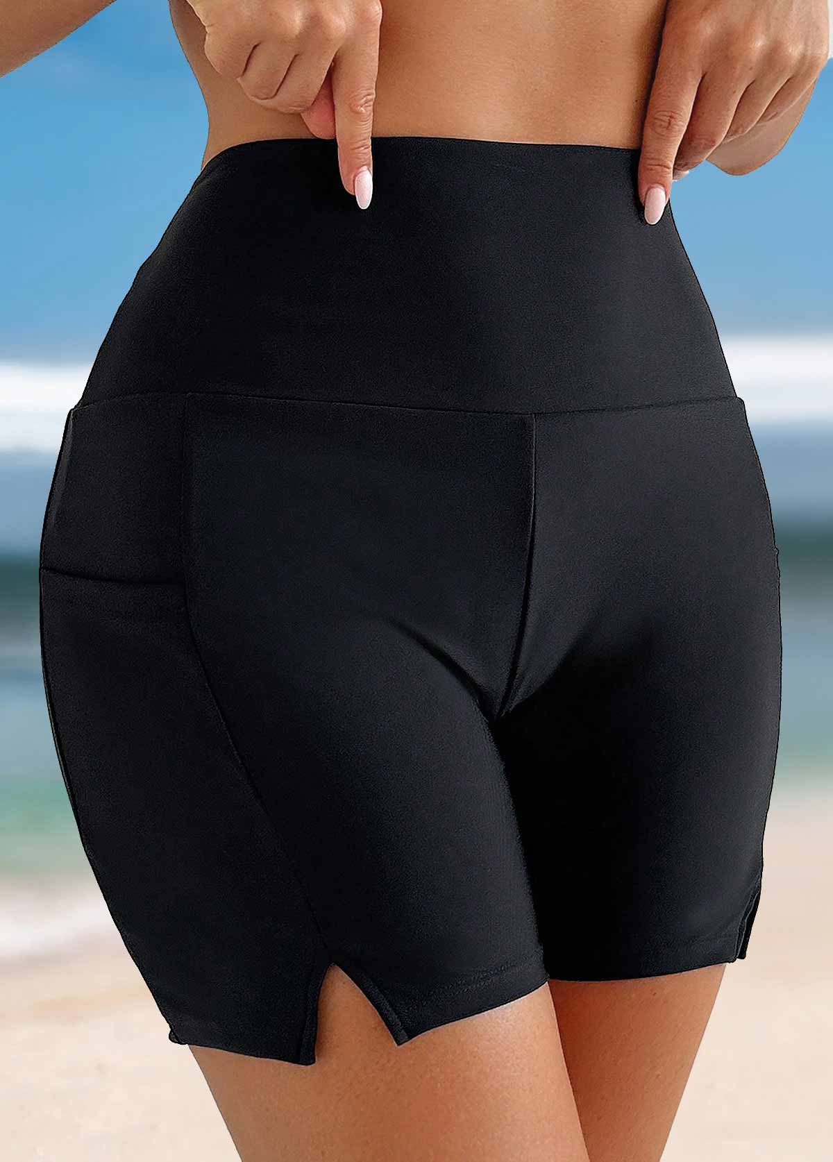 Quick Drying High Waisted Black Pocket Beach Shorts