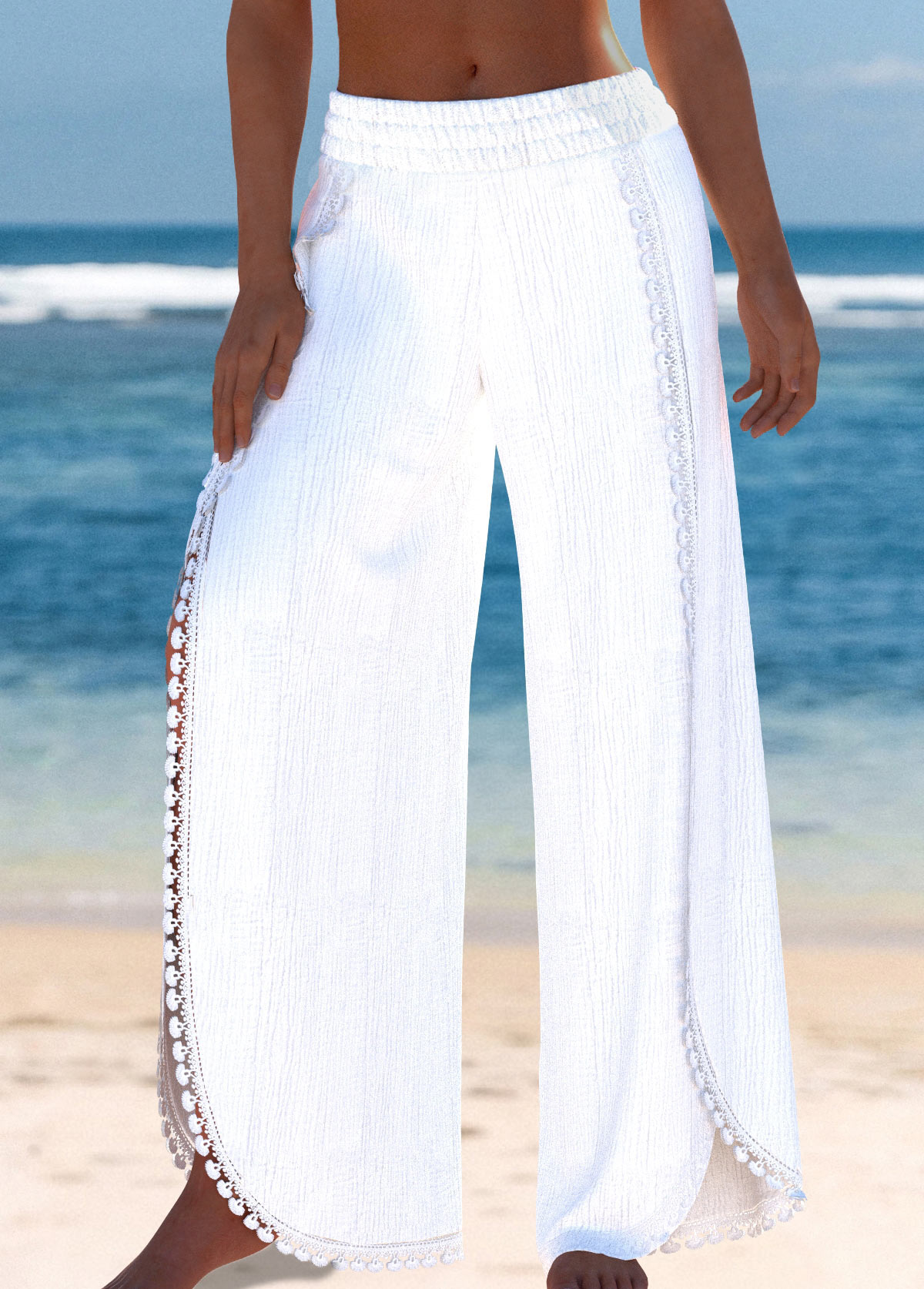 women's clothes / Swimwear / Swimwear Bottom  /  High Waisted White Split Beach Pants