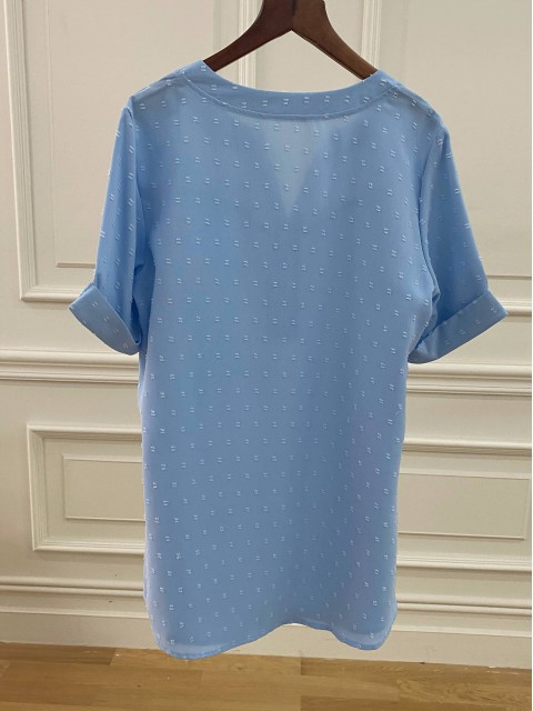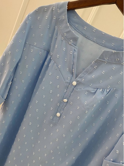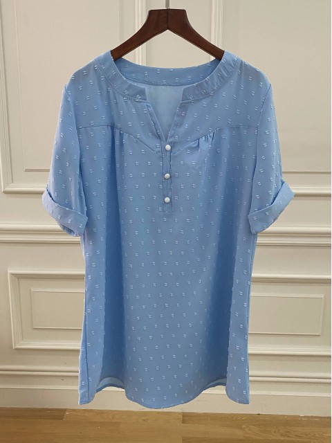 Light Camel Button Half Sleeve Split Neck Blouse