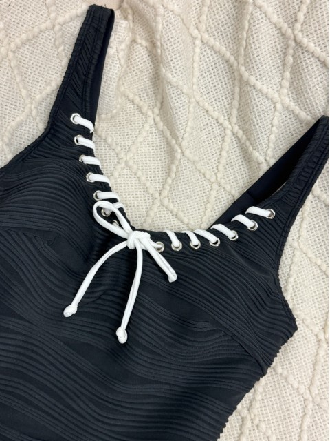 Lace Patchwork Black Bikini Set With Matching Cover Up