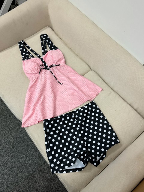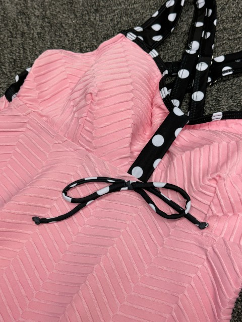 Ruched Mid Waisted Paisley Print Pink Tankini Set