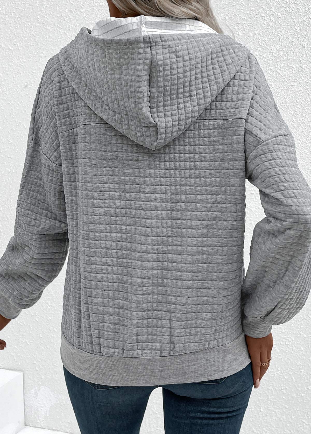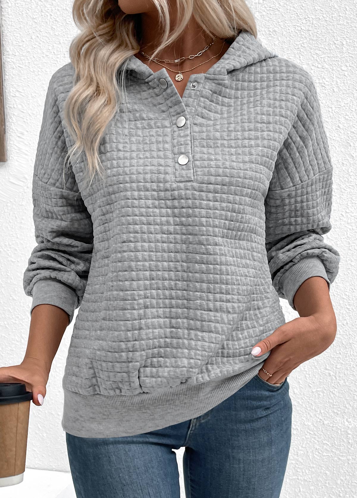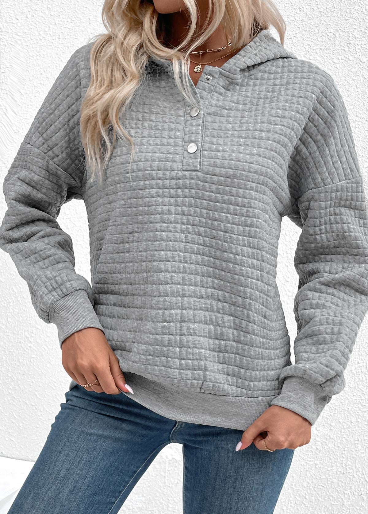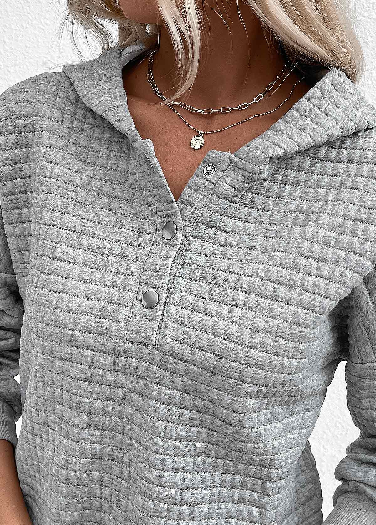 Light Grey Button Long Sleeve Split Neck Sweatshirt