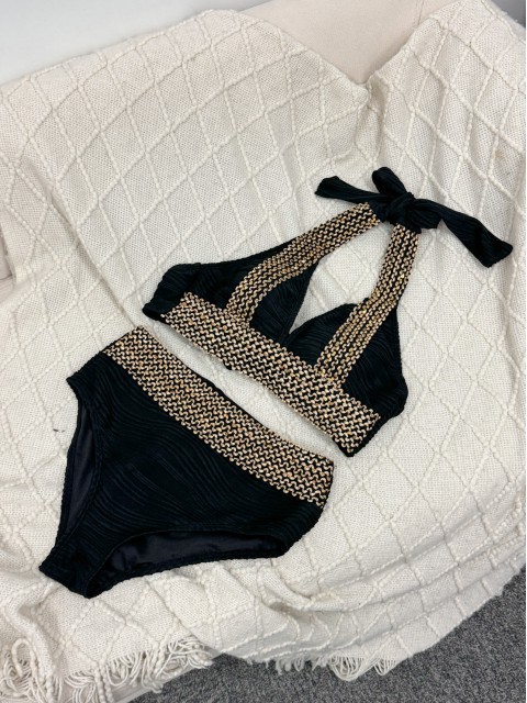 Contrast Binding High Waisted Geometric Print Bikini Set