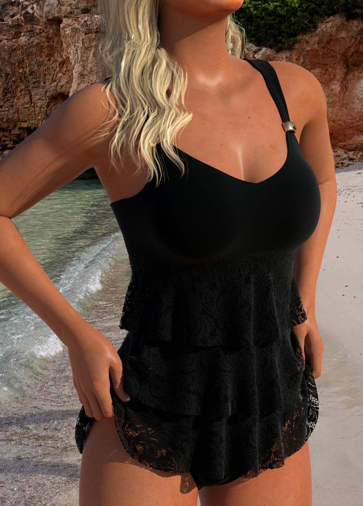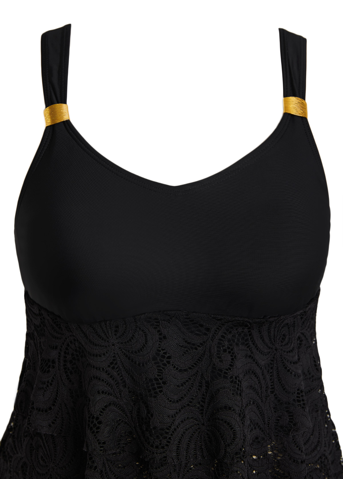 Tummy Coverage Mid Waisted Tribal Print Black Tankini Set