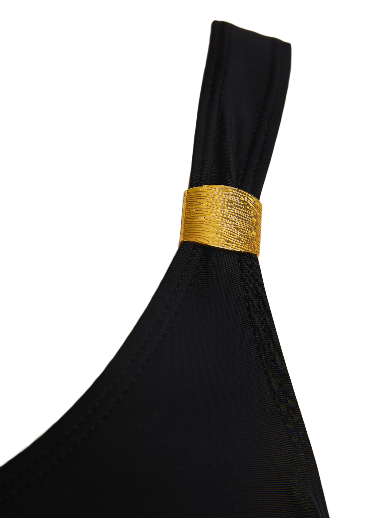 Black Mid Waisted Elastic Detail Swimwear Shorts