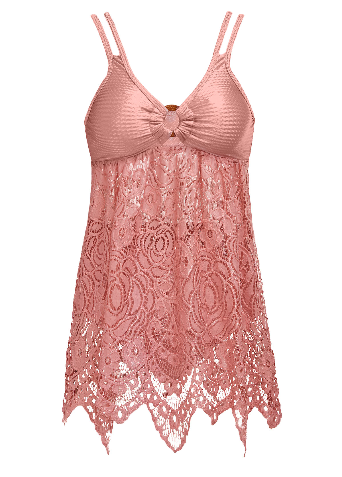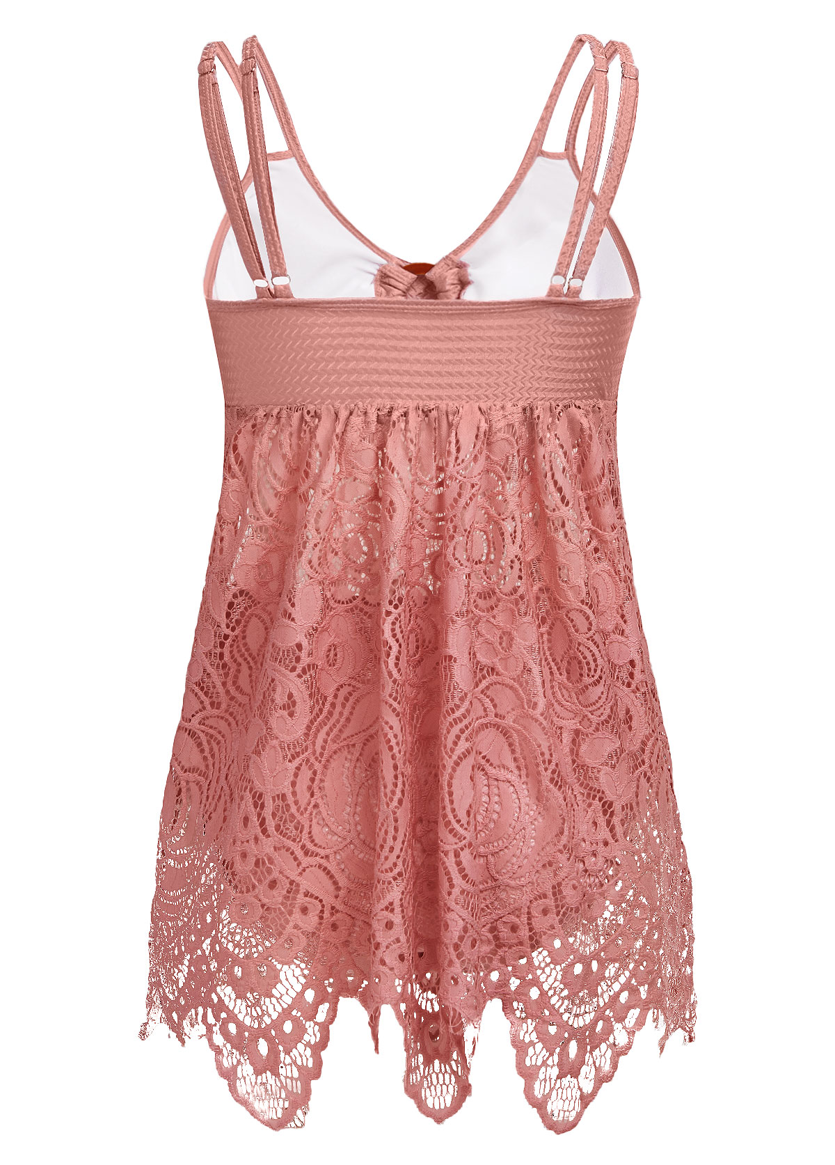 women's clothes / Swimwear / Tankinis / Tankini Sets  /  Lace Mid Waisted Pink Tankini Set