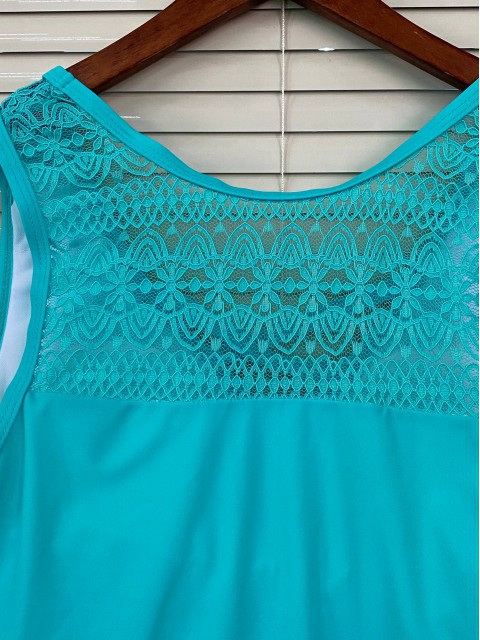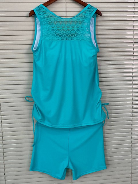 Mid Waisted Marine Life Print Light Blue Tankini Set