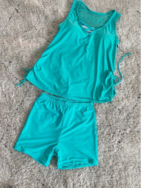 Mid Waisted Paisley Print Sage Green Tankini Set
