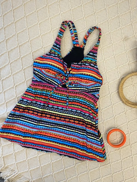 Patchwork Mid Waisted Striped Navy Tankini Set