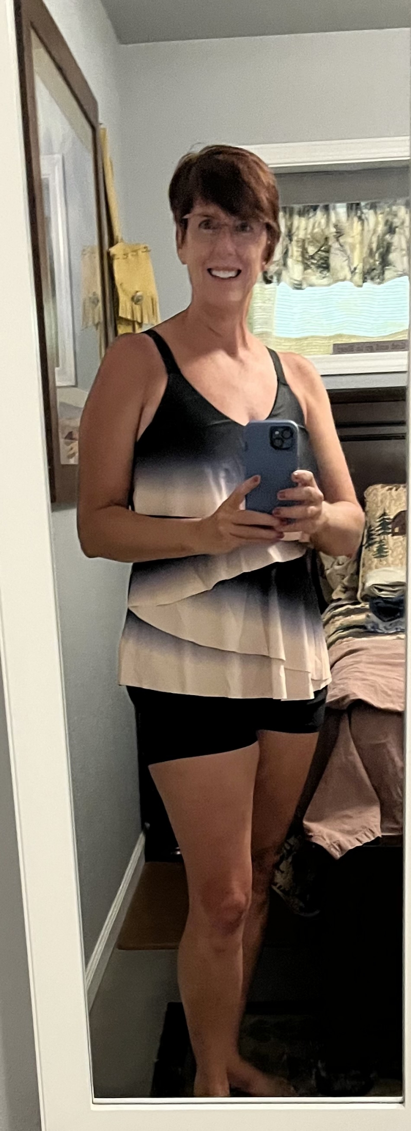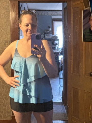 Patchwork Ombre Cyan Double Straps Tankini Top