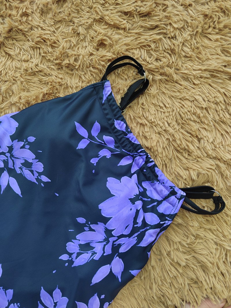 Tummy Coverage Mid Waisted Plants Print Purple Tankini Set