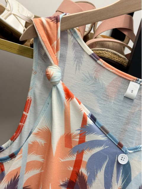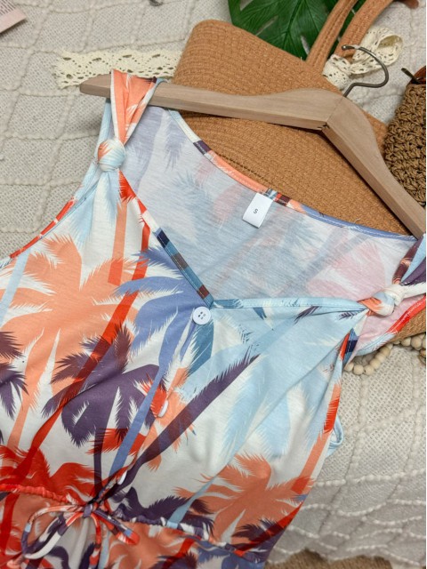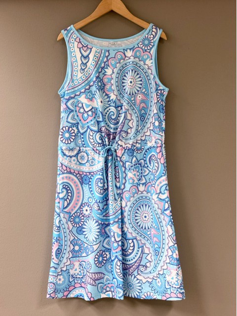 • Light Blue Drawstring Paisley Print Short Sleeveless Dress | thumb picture