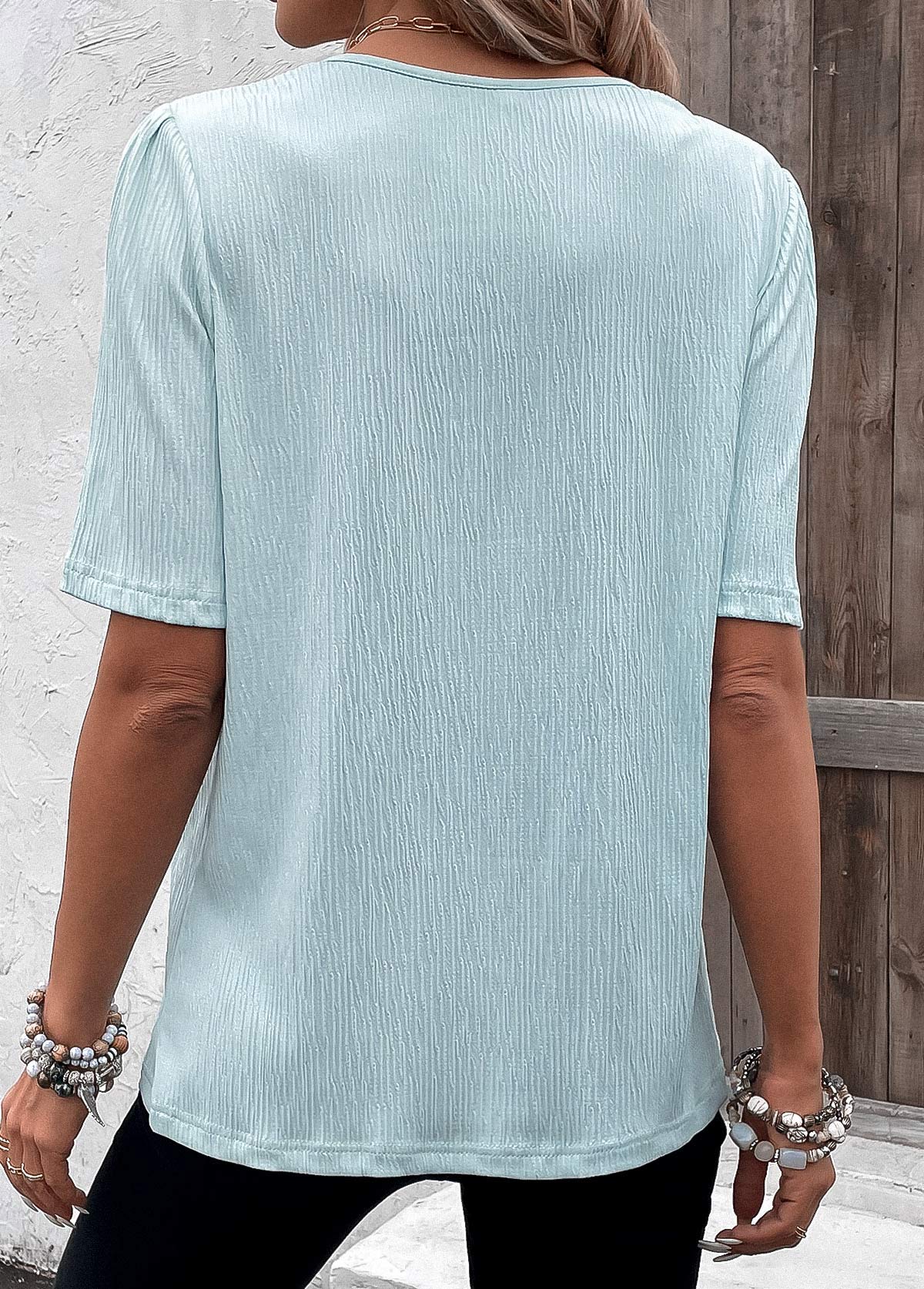 Blue Striped Short Sleeve Split Neck T Shirt