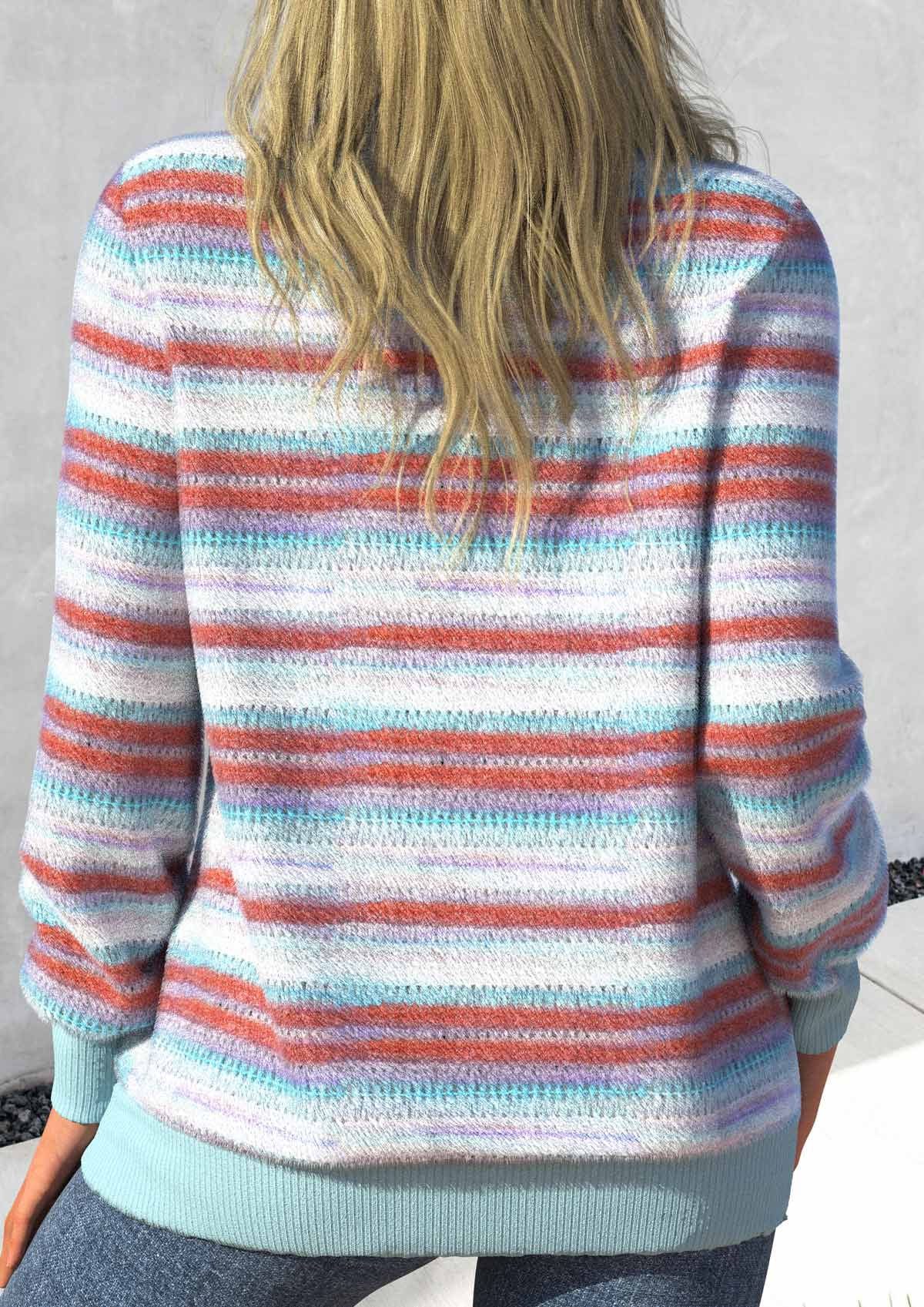 Mint Green Patchwork Striped Long Sleeve Split Neck Sweatshirt