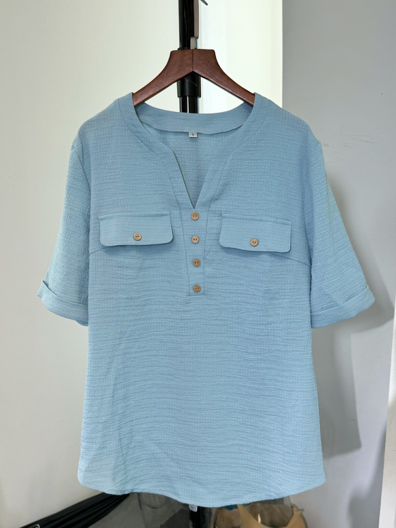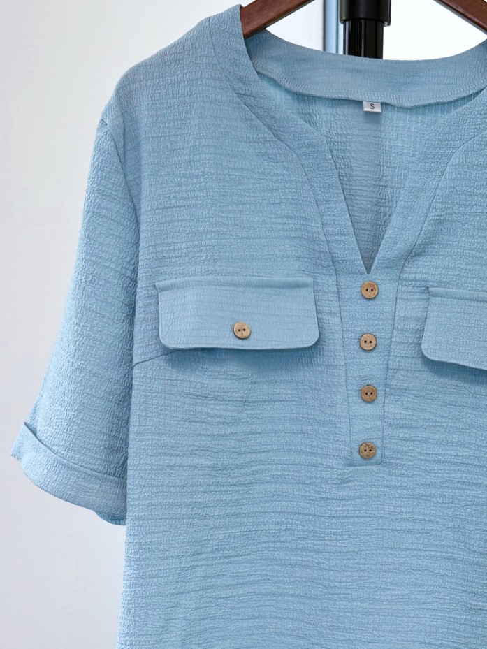 Wine Red Button Long Sleeve Asymmetrical Neck Sweatshirt