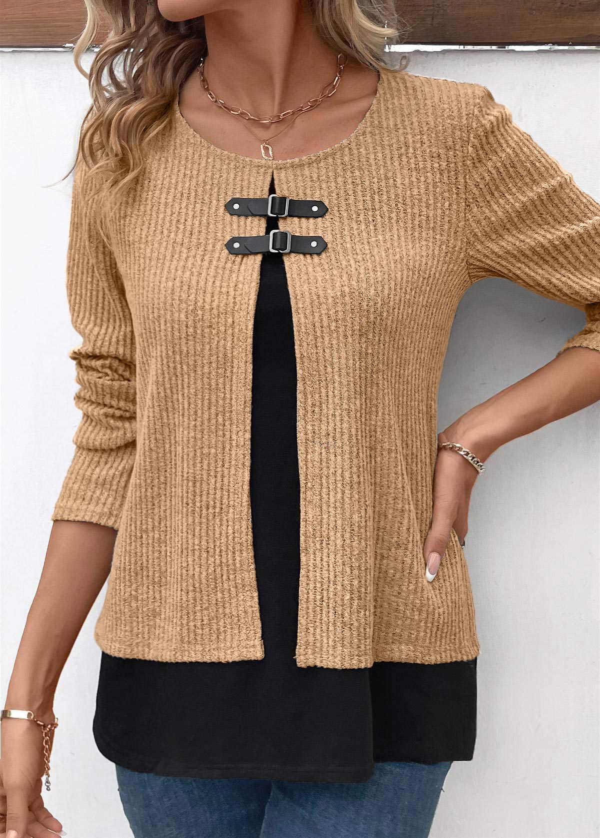 Light Camel Long Sleeve Fake Two Piece Twinset