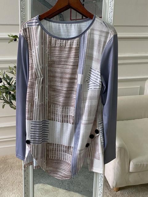 Gray Brown Tummy Coverage Long Sleeve T Shirt
