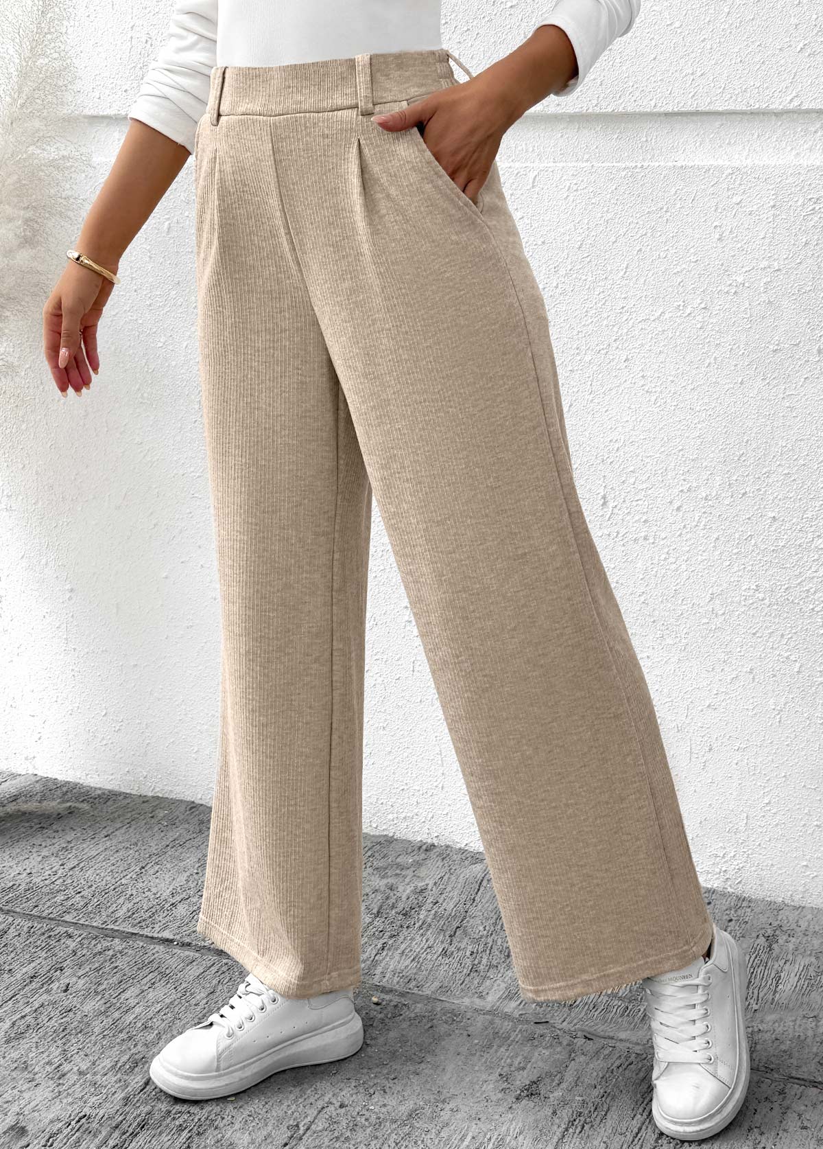 NEW INMODLILY DESIGN Light Camel Pocket Wide Leg Elastic Waist Pants