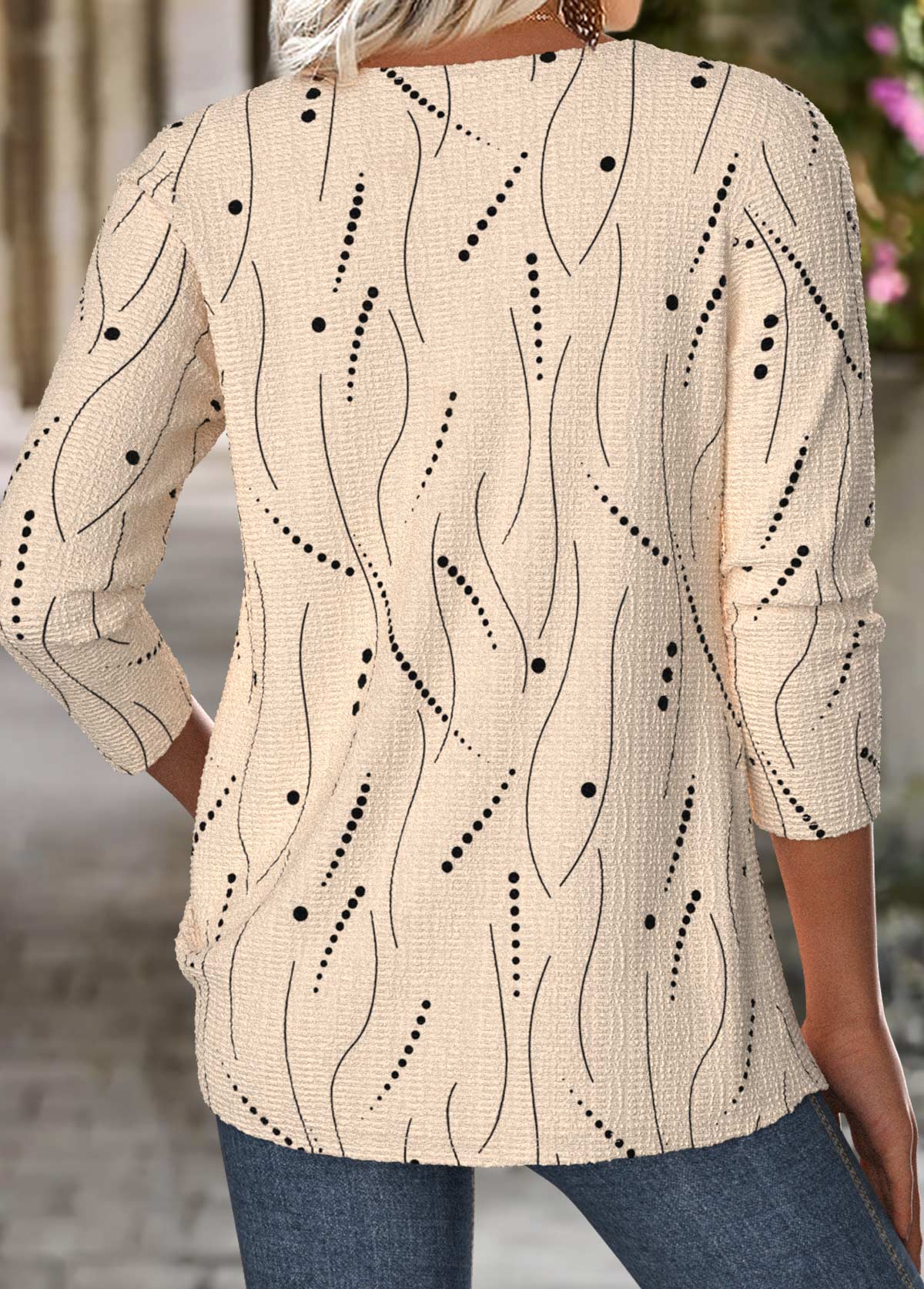 Beige Geometric Print Frill Short Sleeve T Shirt