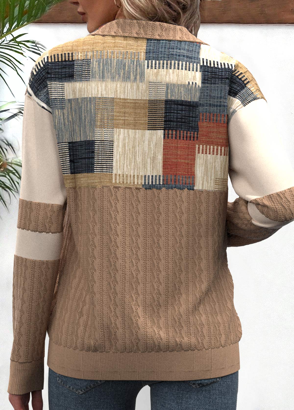 Light Pink Tummy Coverage Geometric Print Long Sleeve Sweatshirt